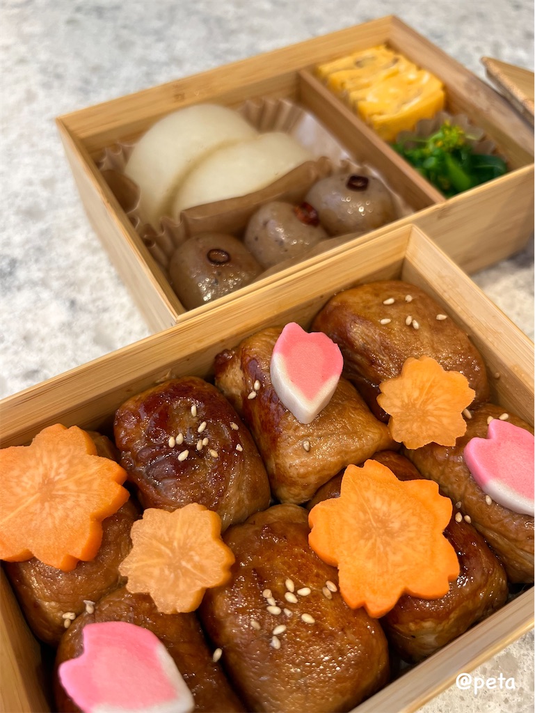 今日は今季最後の春の肉巻きおにぎり弁当をつくってみました🌸