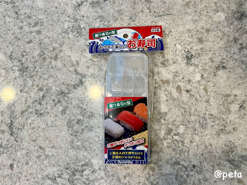 肉巻きおにぎりのご飯は寿司型を使用しています。