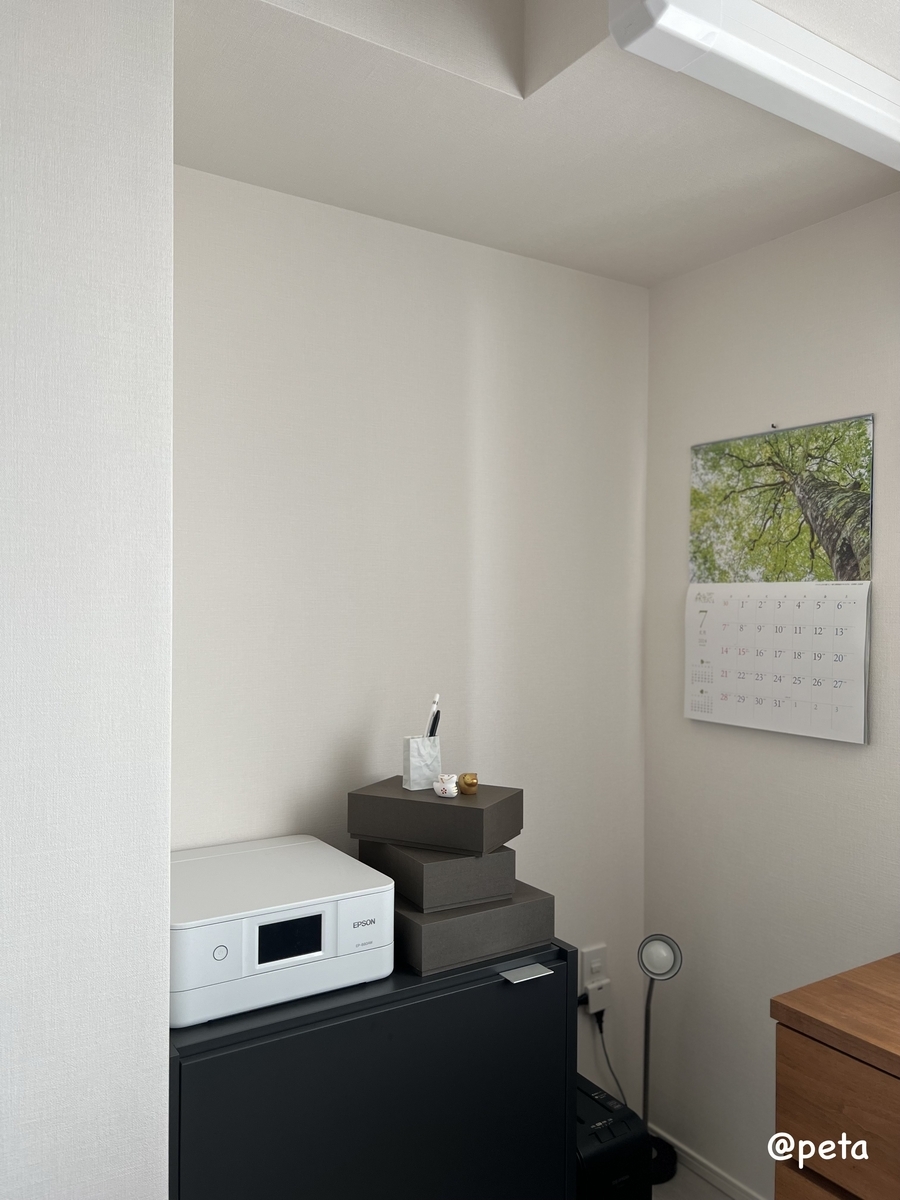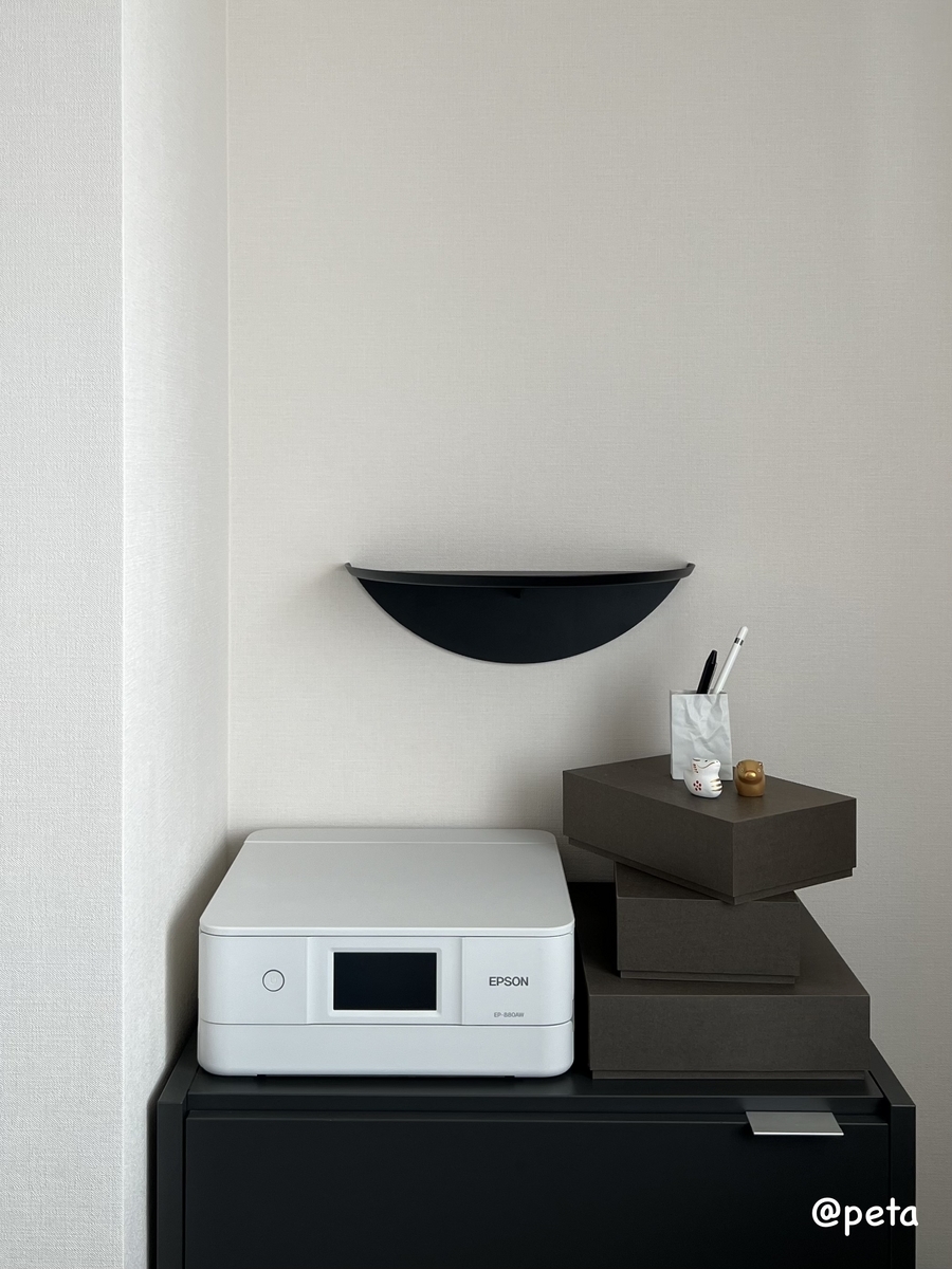 壁に接している半円が見えない位置が良かったのですが、プリンターのカバーを上げられるように、この位置になりました。