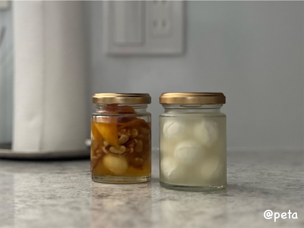 一つははちみつ漬けに。パッケージの裏側にレシピサイトのQRコードが付いていて、こんな使い方があるのね〜と、とても参考になりました😊
