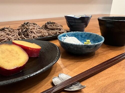 欲しい欲しいと思っていたゆらり黒結晶シリーズの器を買い足しました♩ シンプルな無地の蕎麦猪口は上から見ても横から見ても、手に取ってみてもいい感じ♩ 蕎麦猪口と同時に一番小さいサイズの4.5寸の平皿を購入しました。 さつまいものりんごジュース煮 一…