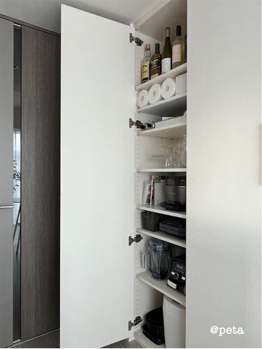 棚板を3枚プラスして調理家電などを収納しました。 かかった費用は6,350円でした。